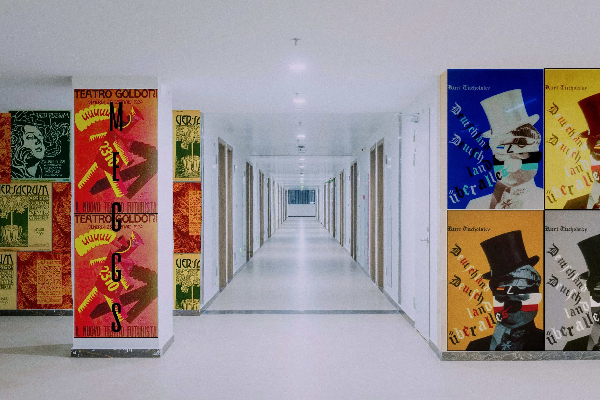 Meggs’ Art & Design School was a project I worked on for my History of Graphic Design class. Throughout the semester we kept a journal of all of our favorite photos from our textbook (Megg’s History of Graphic Design - Philip B. Meggs & Alston W. Purvis). At the end of the semester our professor asked us to gather all of our favorite photos and create a “container” for those photos (i.e. a magazine, brochure, museum, clothing line). For my container, I have chosen to create a fictional design school. I was heavily influenced by the designer Paula Scher, and the way she incorporates typography and design into architecture.
